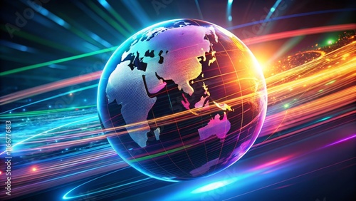 Rotating Digital Globe, Colorful 3D Earth, Technology News Background, Copy Space