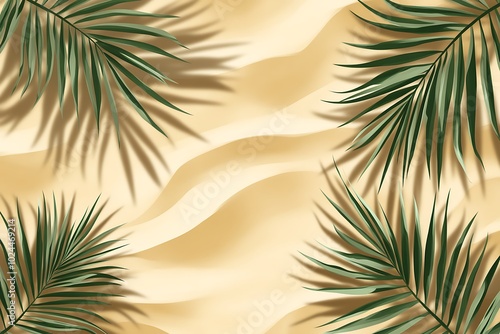 Sand and shadow on the beach from palm leaves. Beige static texture. Template for travel and package design.