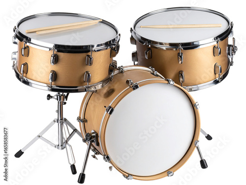 Set of Two Snare Drums with Drumstick, Front View, Transparent PNG
