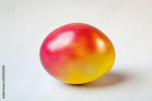 shiny matt glass ceramic orange easter egg with a gradient effect fading from red to yellow isolated on white background with blank space for custom text