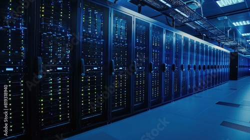 Shot of Data Center With Multiple Rows of Fully Operational Server Racks
