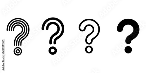 silhouette icon with question mark sign - light version A concept, of a man silhouetted against a question mark and clouds, Three Question Marks Isolated Vector Illustration.