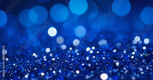 Sparkling blue glitter texture with a bokeh effect, creating a dazzling and festive background. Ideal for celebrations, holidays, or glamorous designs.