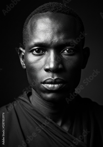 striking studio portrait of an African face against a black background, highlighting dramatic lighting and powerful expressions.