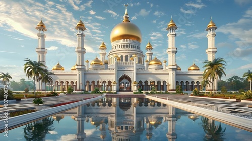 Sultan Omar Ali Saifuddien Mosque with its golden dome and marble minarets.