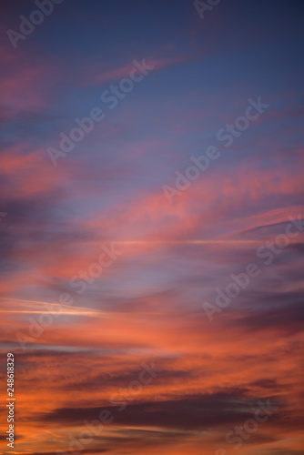 Sunset sky with clouds. Golden sunlight for your idea of web header. Cloudy landscape for background in serenity colors - blue, violet, yellow and pink tone.