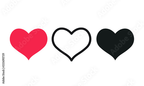 Symbols, icons, vector, heart-shaped, three types, on a white background
