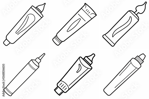 Toothpaste Outline Coloring Book Page Line Art Drawing Set
