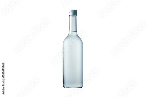 Transparent glass bottle with silver cap, minimalistic design, clean look, suitable for beverages, isolated on transparent background.