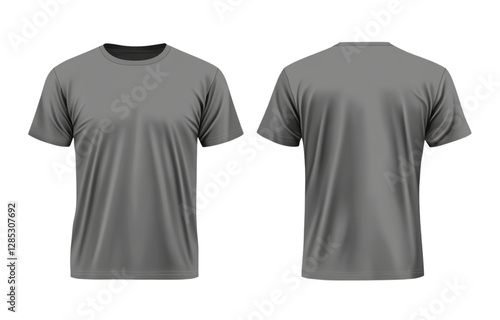 T-shirt mockup template with front and back view of a gray t-shirt isolated on a transparent background (4)