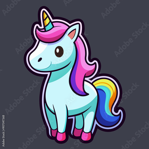 Unicorn Minimalist Vector Sticker: Cute, Flat Design, Black Background