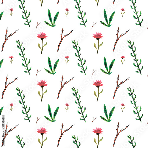 Watercolor pattern of flowers and herbs. Hand drawing.