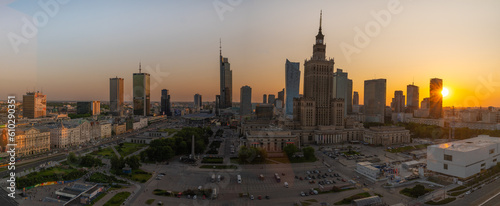 Widok z okna na Warszawę sródmieście i samo centrum ulica Marszałkowska. W tle najwyższe budynki Warszawy, biura i mieszkania.