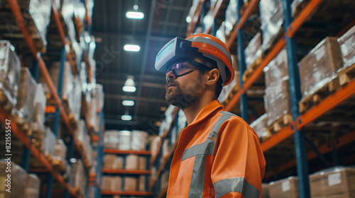 worker in modern warehouse using artificial intelligence and virtual reality based technology for management