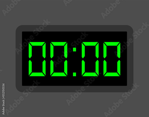0 hours digital clock. Alarm clock design for schedule. Timer icon with digital numbers for appointments and business