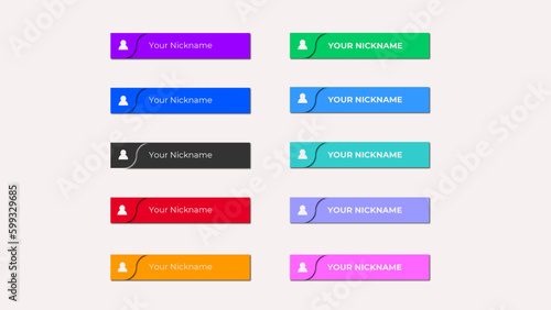 10 Social Media Lower Thirds in bright and gradient colors. All text is editable.
