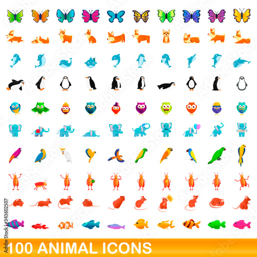 100 animal icons set. Cartoon illustration of 100 animal icons vector set isolated on white background
