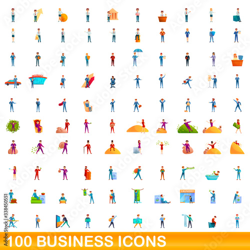 100 business icons set. Cartoon illustration of 100 business icons vector set isolated on white background