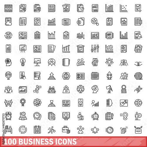 100 business icons set. Outline illustration of 100 business icons vector set isolated on white background