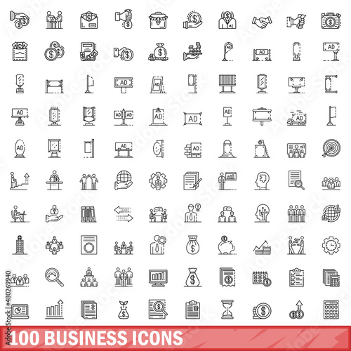 100 business icons set. Outline illustration of 100 business icons vector set isolated on white background