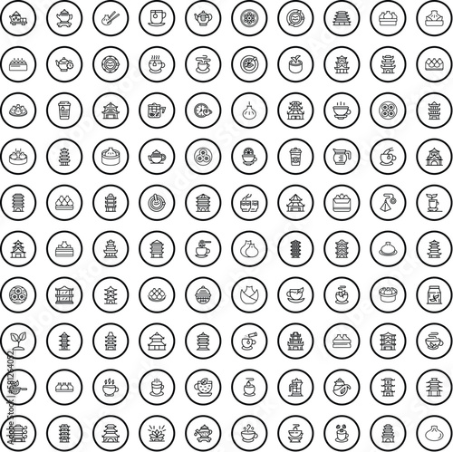 100 china icons set. Outline illustration of 100 china icons vector set isolated on white background