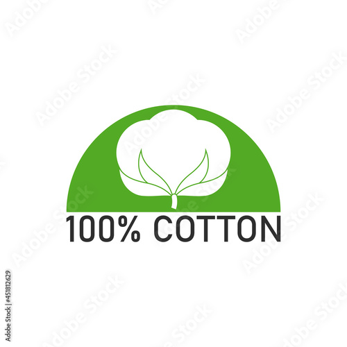 100 percent cotton fabric. Vector label and icon on blank background. Isolated illustration.