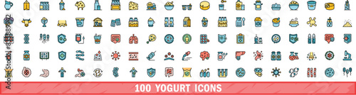 100 yogurt icons set. Color line set of yogurt vector icons thin line color flat on white