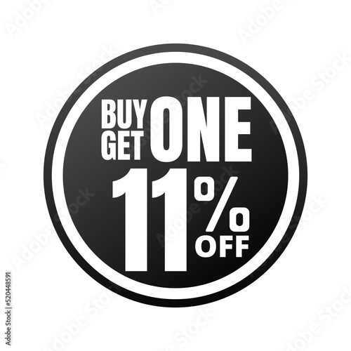 11% off, buy get one, online super discount Black promotion button. Vector illustration, icon Eleven