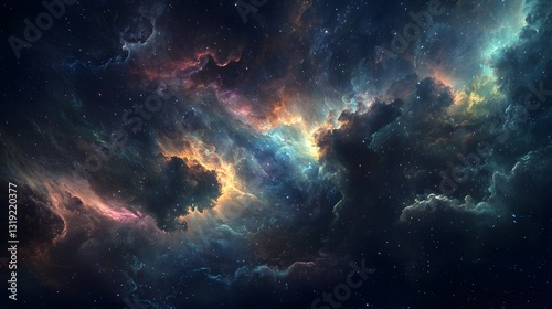 12. A magnificent dark galaxy with luminous gaseous clouds forming the foundation of creation