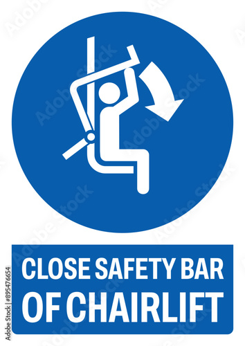 130 ISO mandatory safety signs text variation_close safety bar of chairlift size a4/a3/a2/a1