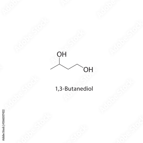 1,3-Butanediol skeletal structure. Diol compound schematic illustration. Simple diagram, chemical formula.