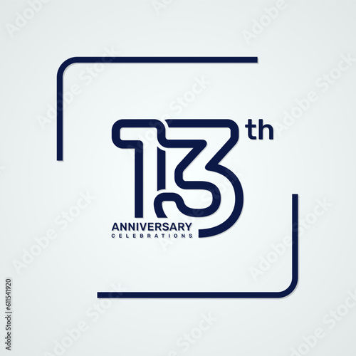 13th anniversary logo design with double line style concept, logo vector template