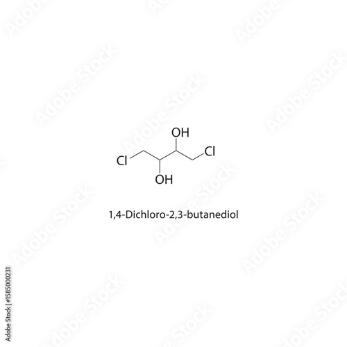 1,4-Dichloro-2,3-butanediol skeletal structure. diol compound schematic illustration. Simple diagram, chemical formula.