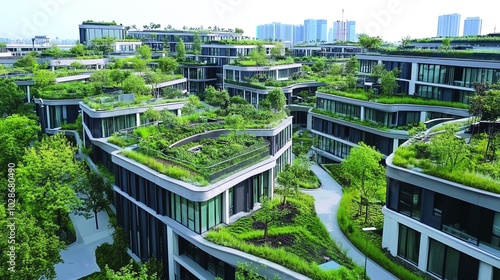 15 An ecofriendly business district with rooftop gardens, waste sorting stations, and bike paths through green corridors