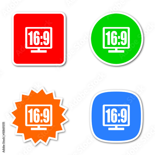 16 9 display simple colored vector web internet icon set flat design sticker tag