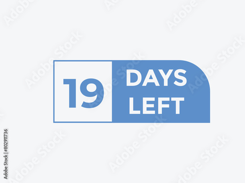 19 days to go countdown template. 19 day Countdown left days banner design. 19 Days left countdown timer
