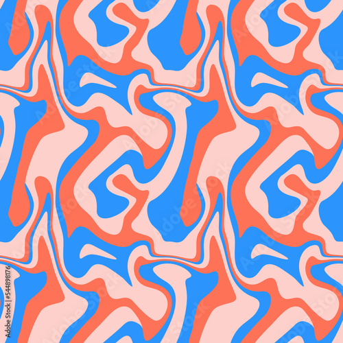 1970 liquid marble seamless pattern. Red blue wavy swirl texture. Groovy trippy distort psychedelic background.
