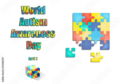 2 April as World Autism Day. Color Puzzles. Vector illustration on isolated background