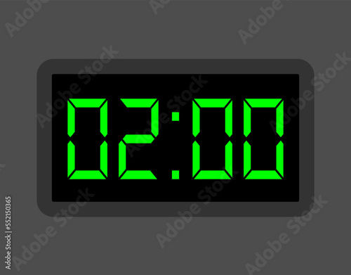 2 hours digital clock. Alarm clock design for schedule. Timer icon with digital numbers for appointments and business