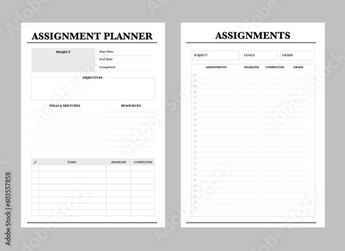 2 set of Assignment Planner. vector illustration. Minimalist planner template set.