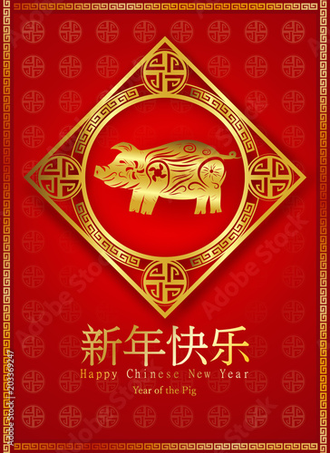2019 Happy Chinese New Year of the Pig Characters mean vector design for your Greetings Card, Flyers, Invitation, Posters, Brochure, Banners, Calendar,Rich,Paper art and Craft Style