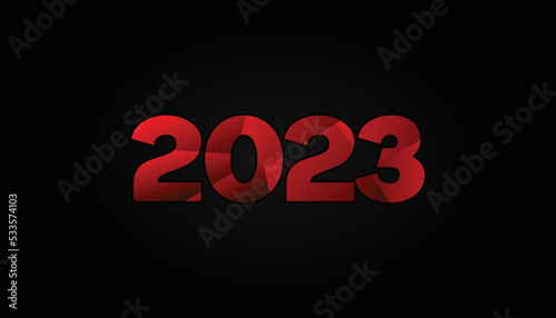 2023. Happy new year 2023 text design. 2023 vector design illustration on black background. 2023 design similar for greetings, invitations, templates, banners, or backgrounds.