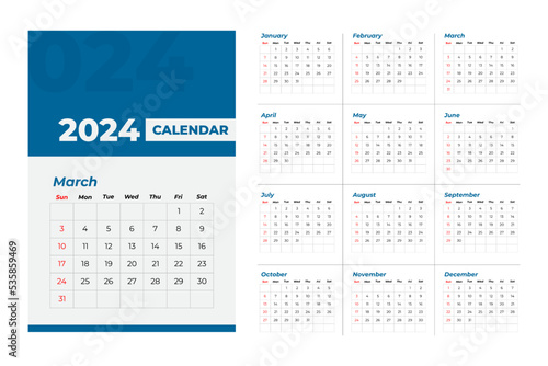 2024 Calendar Template, editable vector