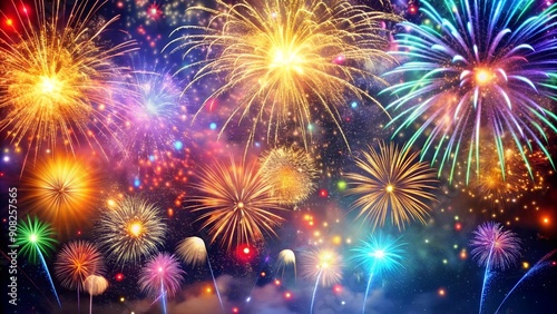 2025: A Festive Celebration with Fireworks and Confetti AI generated