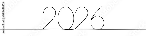 2026 Happy New Year continuous one line drawing. 2026 number design template in simple linear style.