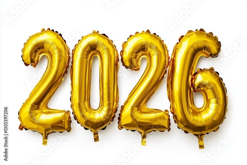 2026 number helium balloons isolated on white background. Realistic foil balloon