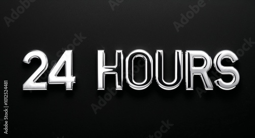 24 hours silver shining shiny solid metallic lettering on plain black background