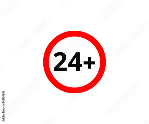 24+ restriction flat sign isolated on white background. 24 plus Age limit symbols