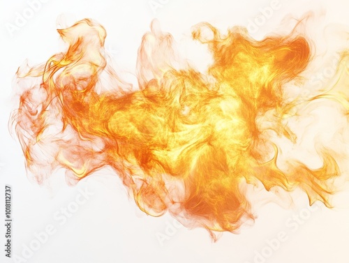 2408 82.A burst of dynamic fire flames with bright yellow cores and deep orange edges, isolated against a white background. The individual flames twist and curl, creating a dramatic, high-energy
