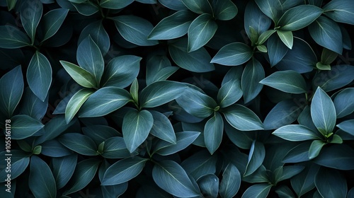 2410 38.A lush composition of dark green leaves in a garden, with the intricate details of each leaf clearly visible. The rich, deep green tones are enhanced by subtle lighting, creating a soothing,